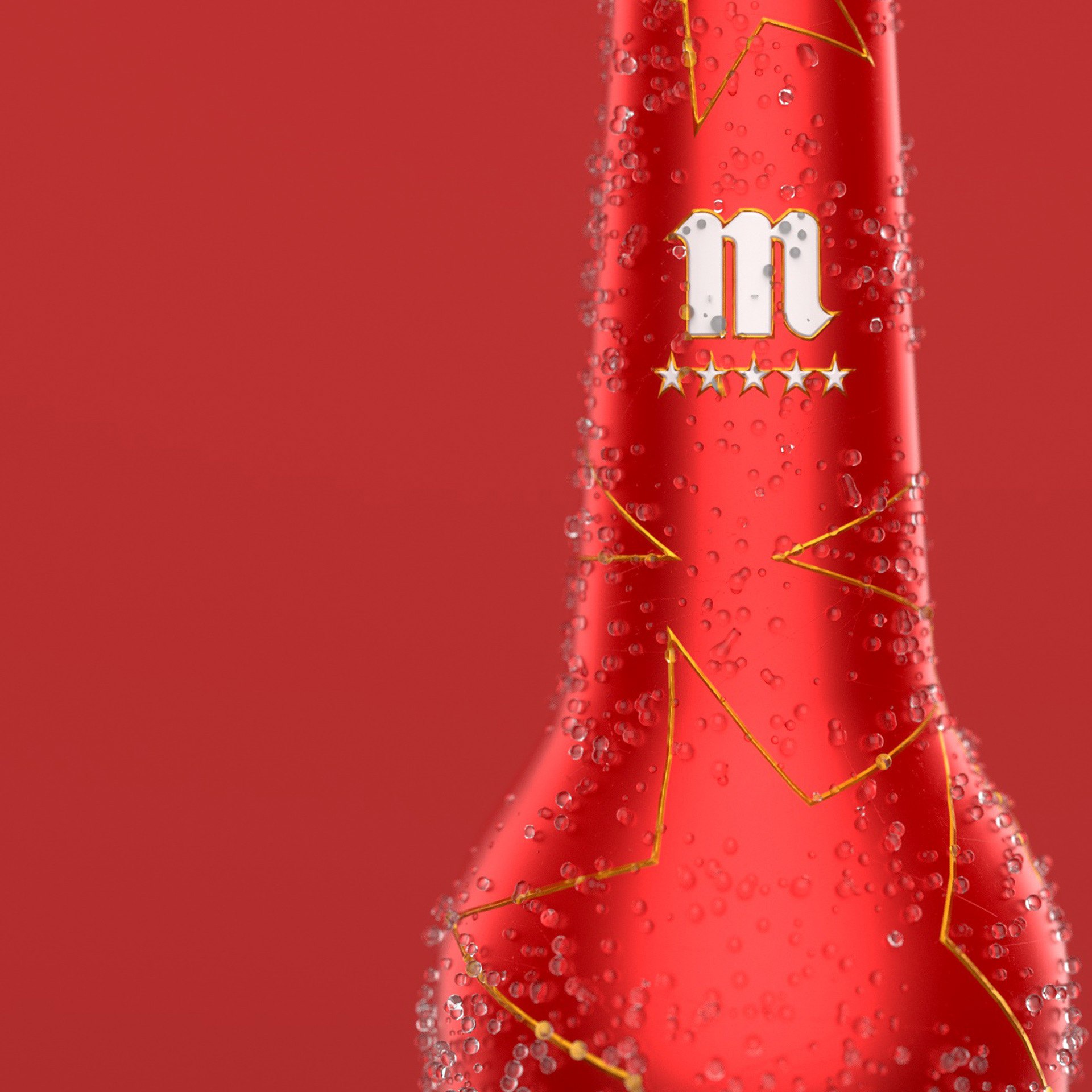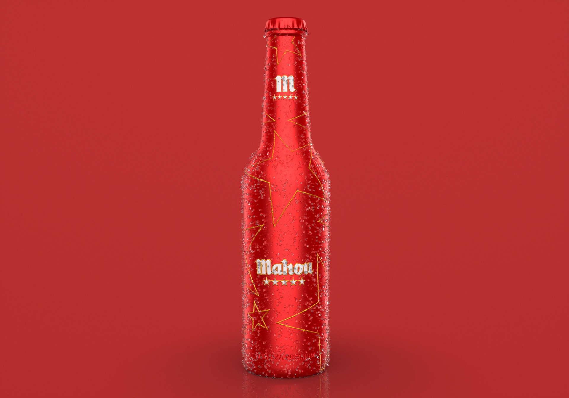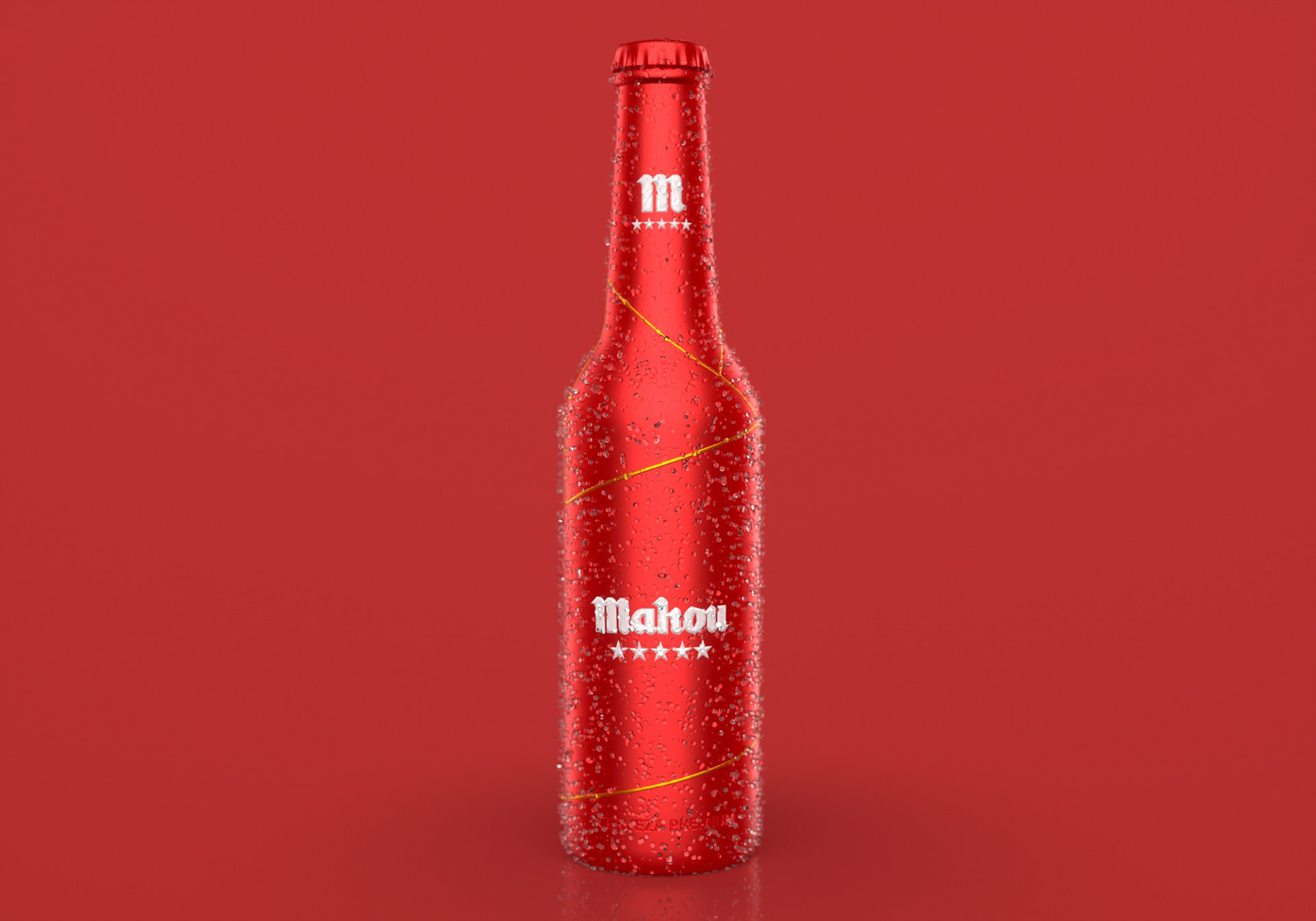 This was a concept developed for Mahou beer which we create a premium metallic bottle to keep the beer cold for a longer time. As you can see in the full CGI video the water droplets defy gravity.